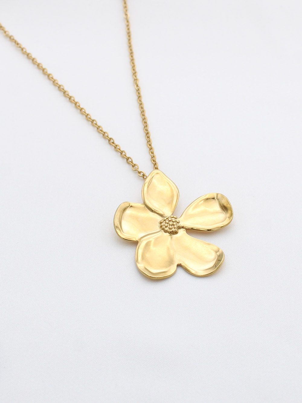 Collier raffiné en acier inoxydable avec un grand motif fleur, pour une touche féminine et sophistiquée.