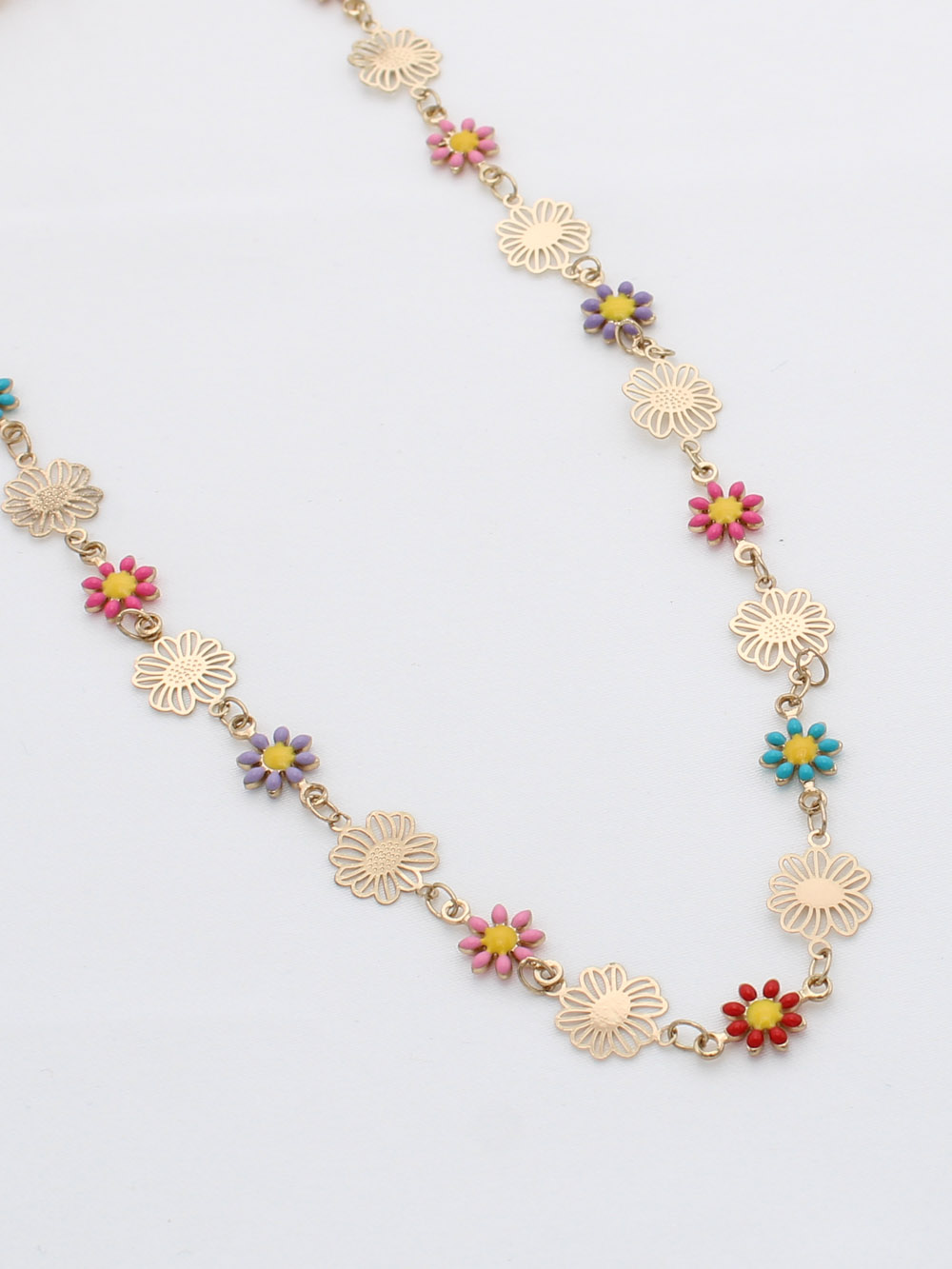 Ce collier floral multicolore évoque la beauté d’un jardin en pleine floraison. Chaque fleur, aux nuances éclatantes et harmonieuses, reflète la fraîcheur, la vitalité et la féminité. Réalisé en acier inoxydable, il allie résistance et raffinement, tout en conservant un éclat durable. Véritable pièce maîtresse, ce bijou illumine vos looks avec une touche romantique et festive, parfaite pour les journées ensoleillées ou les soirées spéciales.