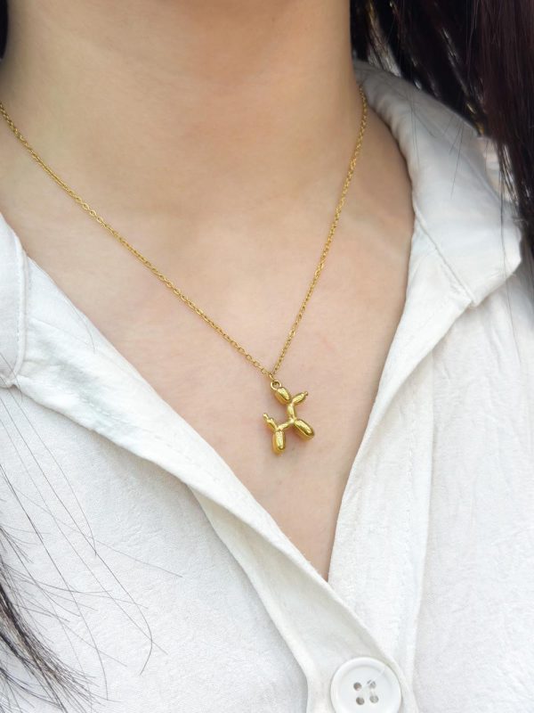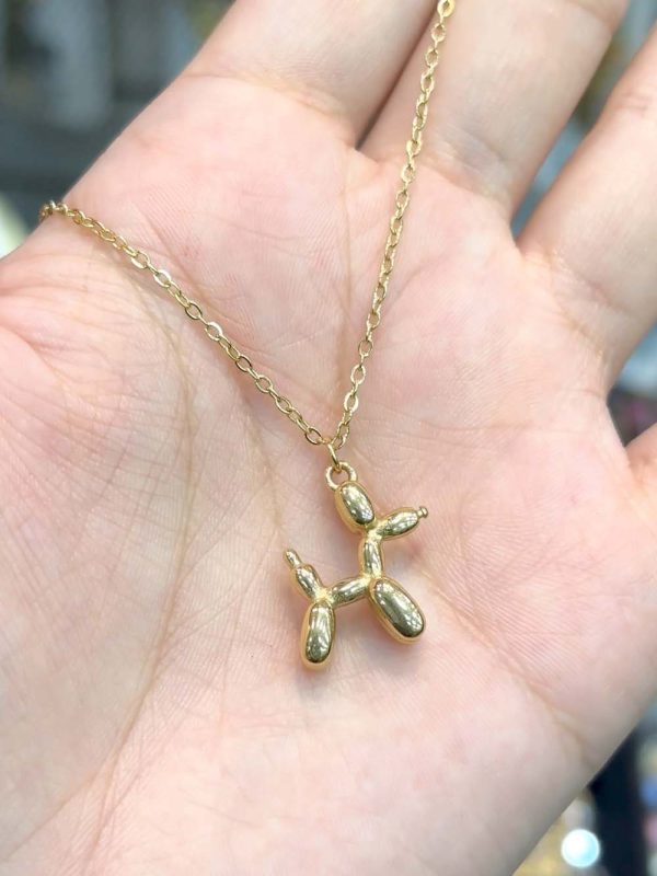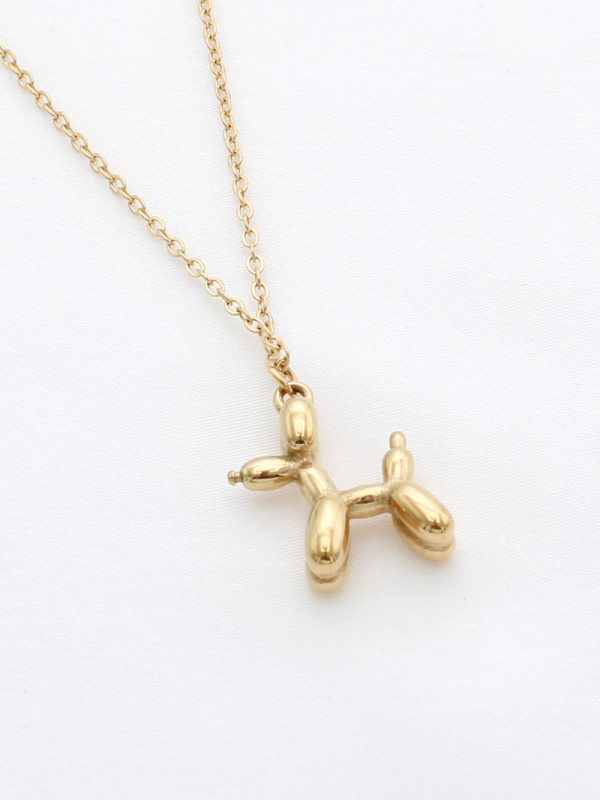 Collier moderne en acier inoxydable doré, orné d’un pendentif original en forme de chien ballon.