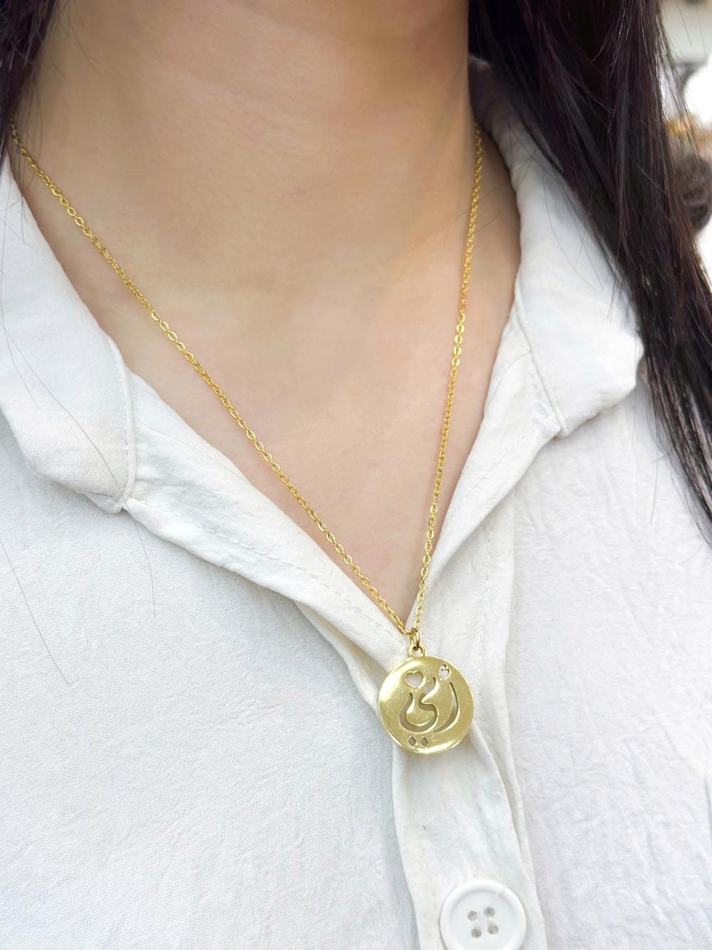 Collier raffiné en acier inoxydable, orné d’un pendentif calligraphié “أمي” en arabe.