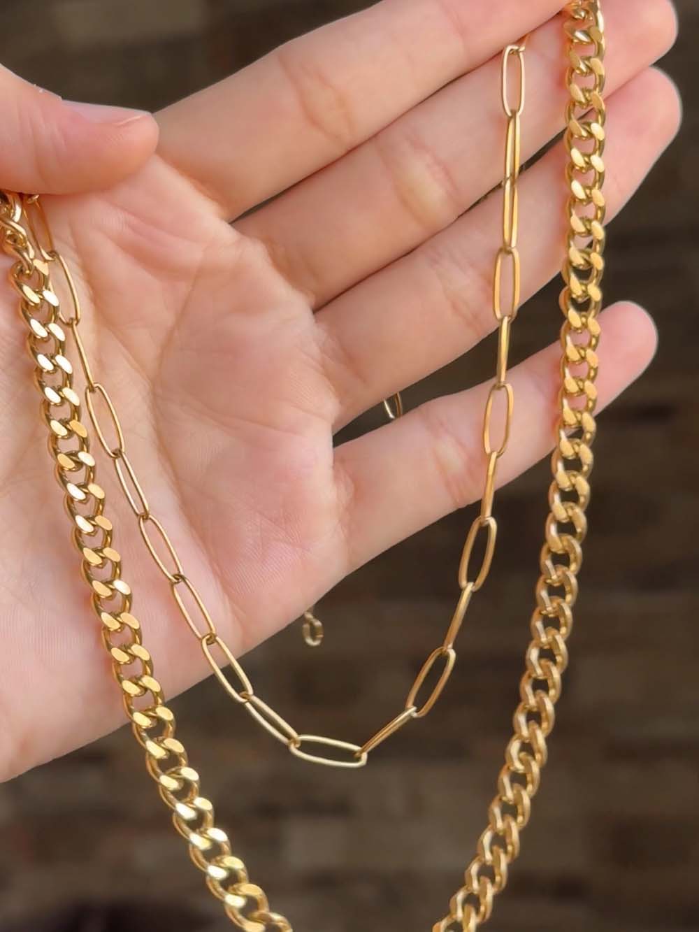 Ce collier à double rang en acier inoxydable associe harmonieusement deux styles : une chaîne plus épaisse qui apporte caractère et modernité, et une chaîne de taille moyenne qui équilibre l’ensemble avec élégance. Polyvalent et dans l’air du temps, ce bijou est parfait pour celles qui recherchent un look sophistiqué sans effort. Grâce à la robustesse et à la brillance durable de l’acier inoxydable, il se porte aussi bien au quotidien que pour rehausser une tenue chic. Idéal pour adopter la tendance layering tout en restant raffiné.