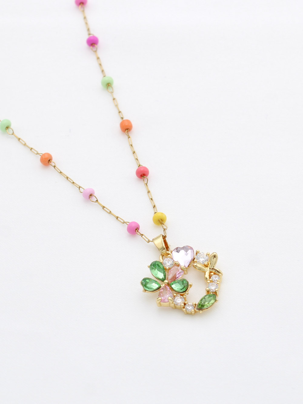 Collier Doré avec Pendentif Rond Coloré et Pierres Multicolores P011156