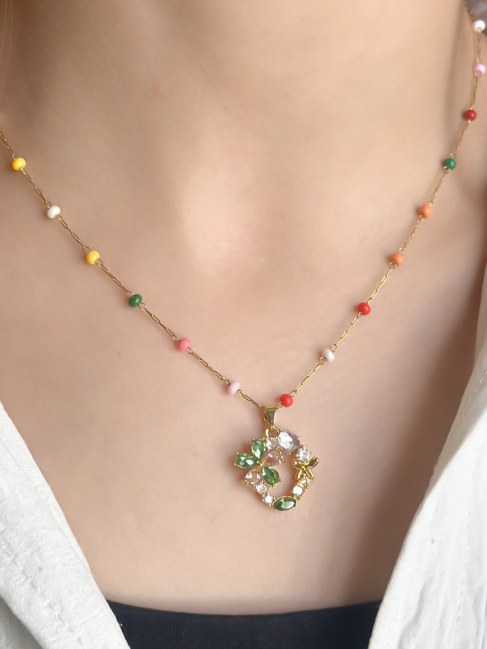 Apportez une touche de lumière et de gaieté à vos tenues avec ce collier doré raffiné. Son pendentif rond, rehaussé de couleurs vives et harmonieuses, s’accompagne de pierres multicolores qui reflètent la lumière avec élégance. Fabriqué en acier inoxydable doré, il allie modernité et durabilité. Ce bijou unique incarne la joie et la créativité, idéal pour sublimer vos looks quotidiens ou donner une touche festive à vos soirées.