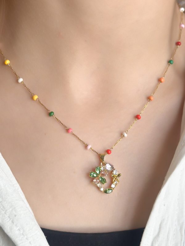 Collier Doré avec Pendentif Rond Coloré et Pierres Multicolores P011156