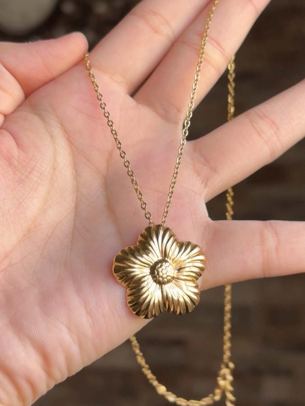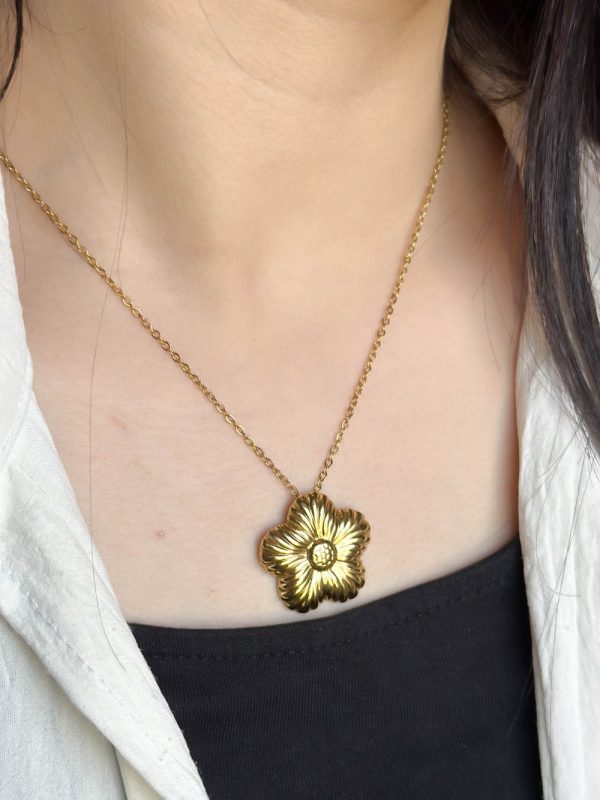 Collier raffiné en acier inoxydable, orné d’un pendentif délicat en forme de fleur.