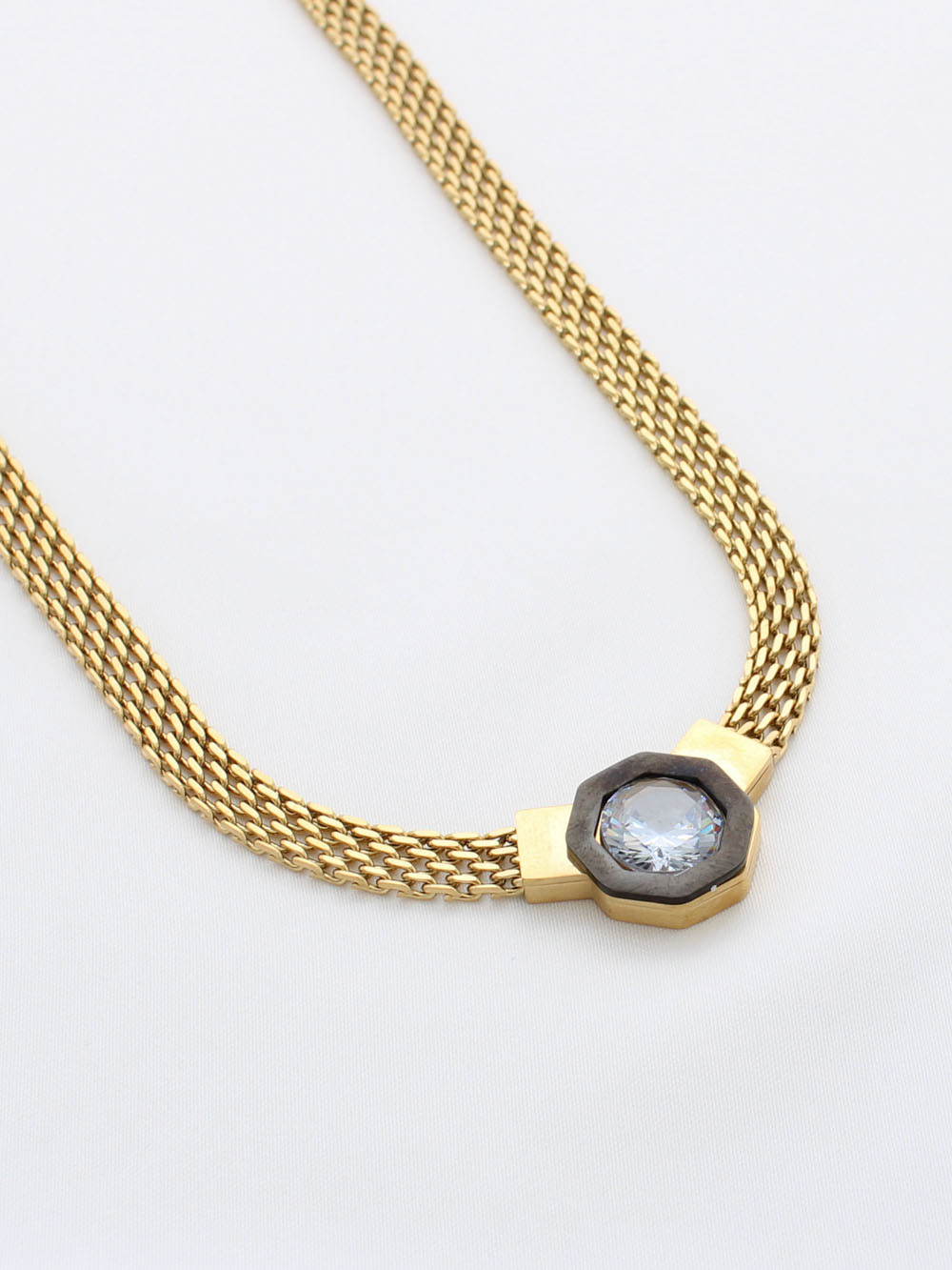 Collier tendance, non fin, orné d’un motif noir sophistiqué.