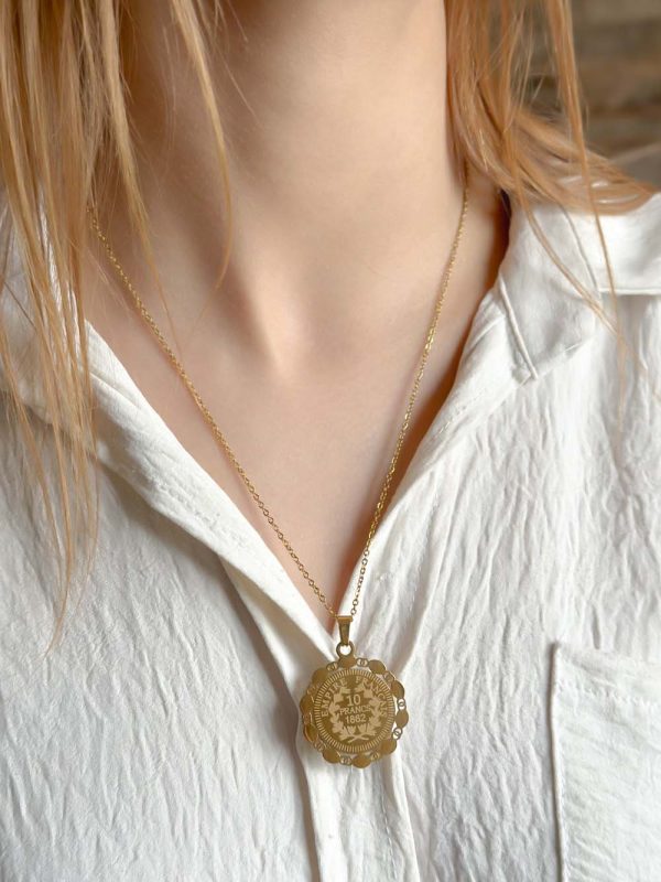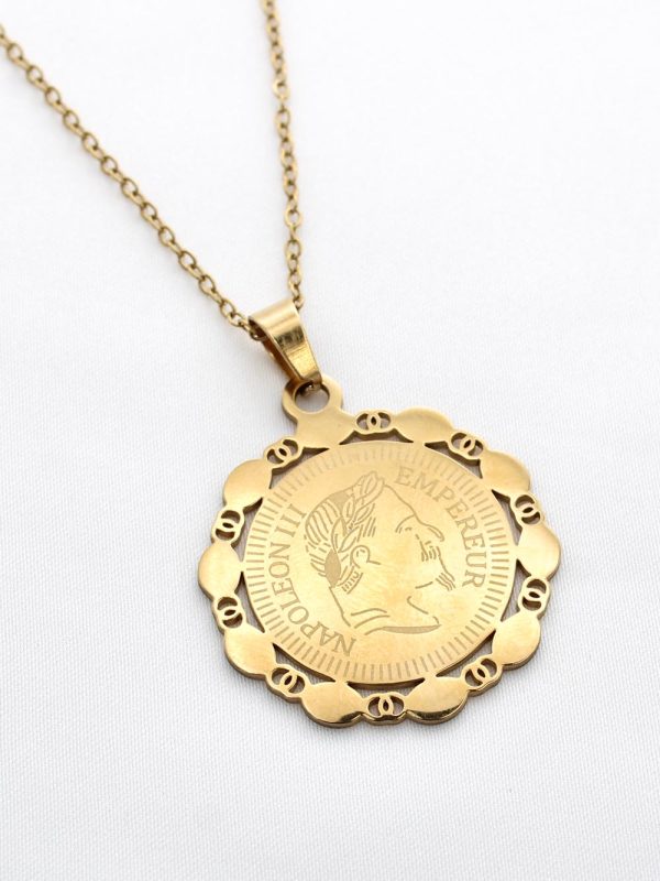 Ce collier élégant se distingue par un grand pendentif circulaire orné du motif Louiza, symbole intemporel d’élégance et de féminité. Fabriqué en acier inoxydable, il allie brillance durable et résistance exceptionnelle, parfait pour un usage quotidien. Son design raffiné en fait un bijou polyvalent, idéal aussi bien pour compléter une tenue chic que pour apporter une touche distinguée à vos looks de tous les jours.