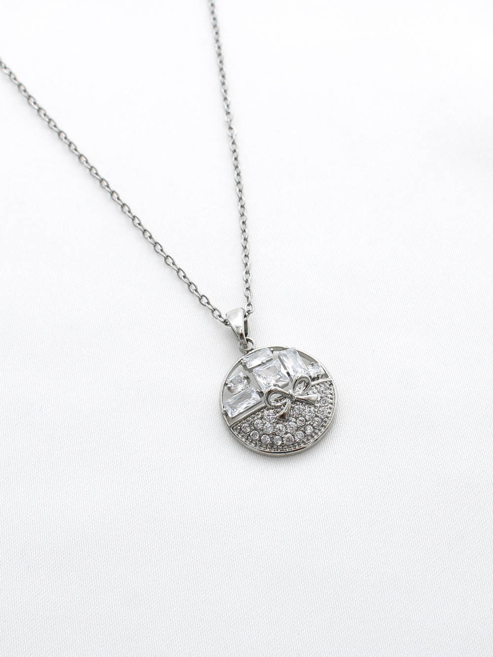 Collier argenté en acier inoxydable avec pendentif rond P011994