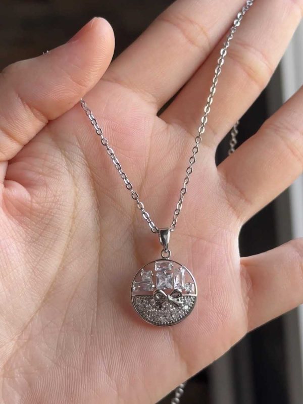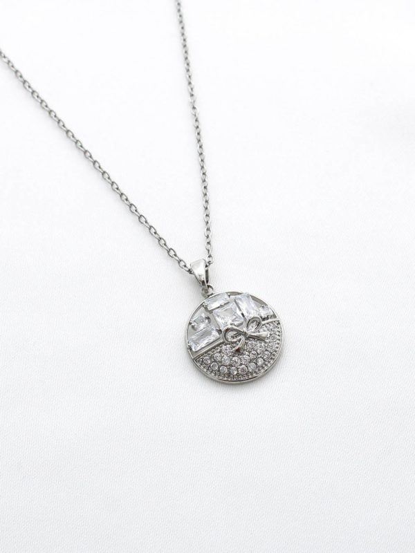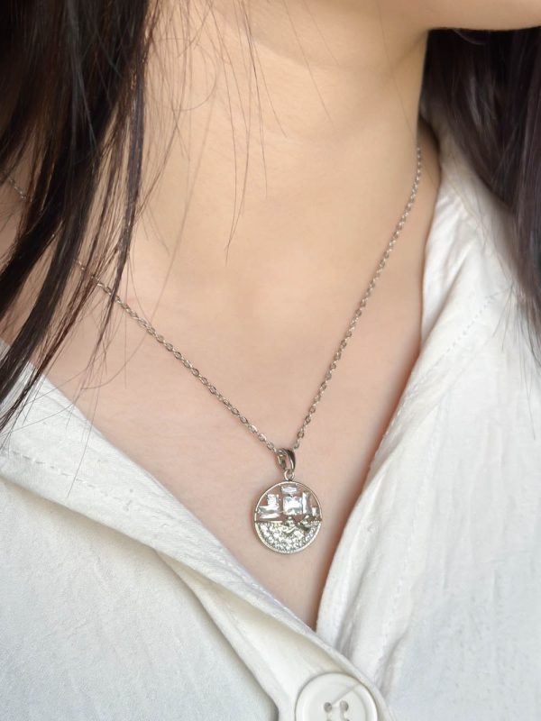 Collier simple et élégant en acier inoxydable argenté, orné d’un pendentif circulaire intemporel.