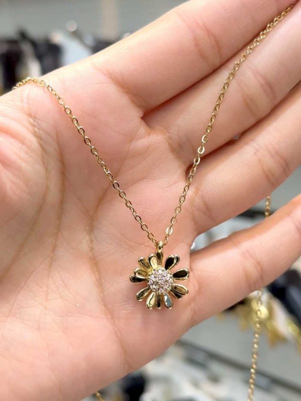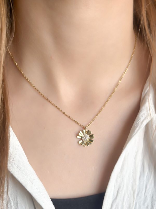 Collier délicat en acier inoxydable, orné d’un pendentif en forme de petite rose.