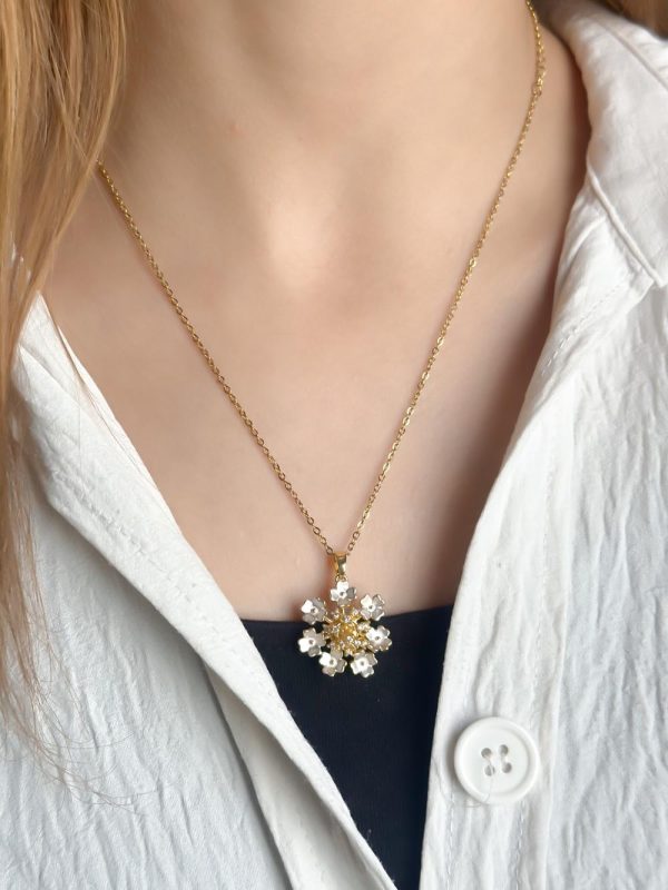 Collier Pendentif Fleur Blanche en Acier Inoxydable P012883