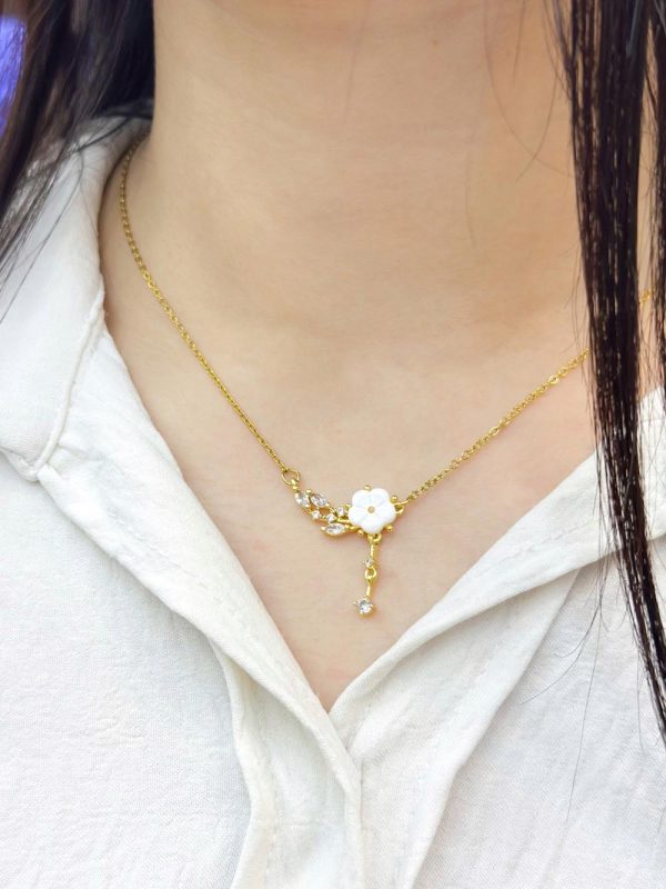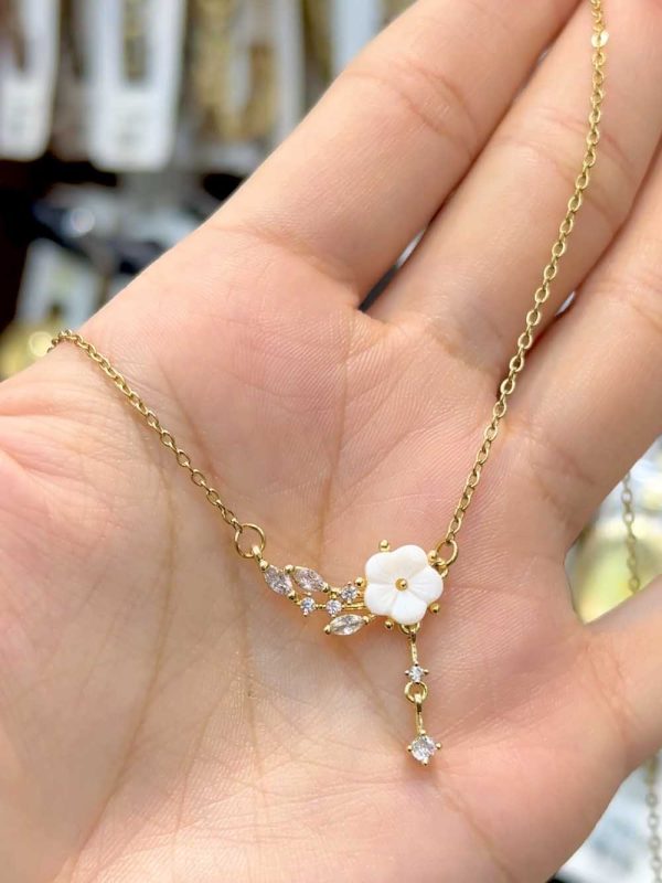 Collier élégant orné d’une fleur blanche disposée à l’horizontale, pour une touche de raffinement unique.