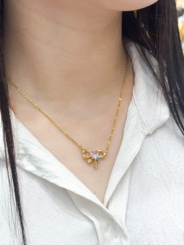 Collier délicat en acier inoxydable, orné d’un pendentif en forme de nœud papillon raffiné.