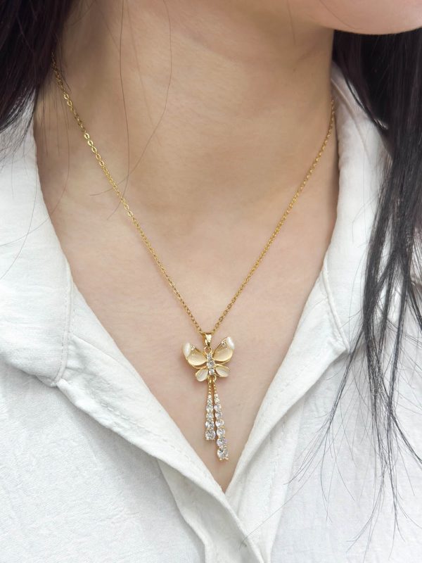 Collier délicat avec un pendentif papillon beige, symbole d’élégance et de légèreté naturelle.