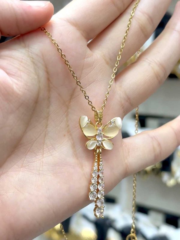 Collier Pendentif Papillon Beige en Acier Inoxydable P012890