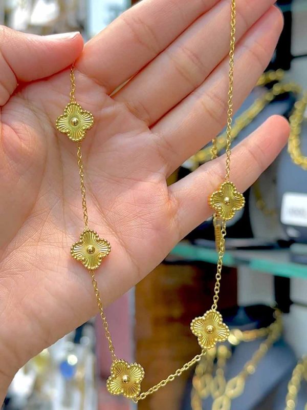 Inspiré de l’iconique motif Van Cleef, ce collier met en valeur un pendentif trèfle, reconnu comme symbole universel de chance et de prospérité. Réalisé en acier inoxydable de haute qualité, il allie durabilité et éclat raffiné, résistant à la rouille et au ternissement. Chic et intemporel, il s’adapte aussi bien aux looks quotidiens qu’aux occasions spéciales. Plus qu’un simple bijou, c’est une pièce élégante qui apporte une touche de sophistication et un brin de chance à chaque tenue.