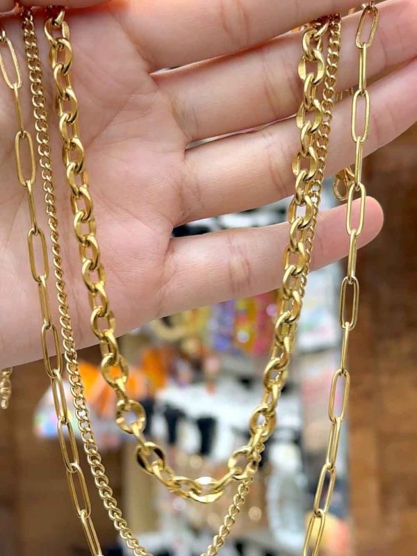Ce collier sophistiqué combine trois chaînes délicates pour un look superposé tendance et élégant. Réalisé en acier inoxydable de haute qualité, il résiste à la rouille et conserve son éclat au fil du temps. Polyvalent et raffiné, il peut être porté seul pour une touche de style minimaliste ou combiné avec d’autres bijoux pour un effet plus audacieux. Idéal pour compléter vos tenues quotidiennes ou sublimer vos looks plus habillés, ce bijou incarne la modernité et la féminité.