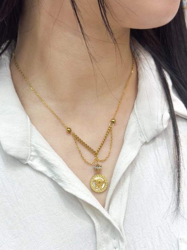 Collier élégant inspiré du style Versace, en acier inoxydable, pour un look luxueux et sophistiqué.