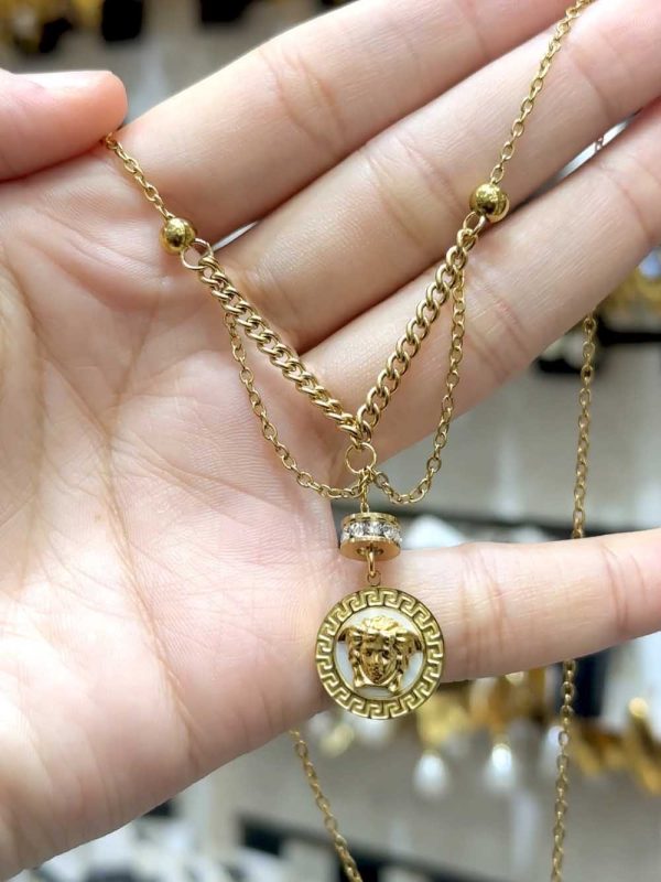 Ce collier s’inspire du design emblématique de Versace, alliant luxe et modernité. Réalisé en acier inoxydable de haute qualité, il résiste à la rouille et aux rayures, garantissant un bijou durable et raffiné. Parfait pour sublimer vos tenues quotidiennes ou pour offrir un cadeau élégant, il apporte une touche prestigieuse et sophistiquée à chaque look.