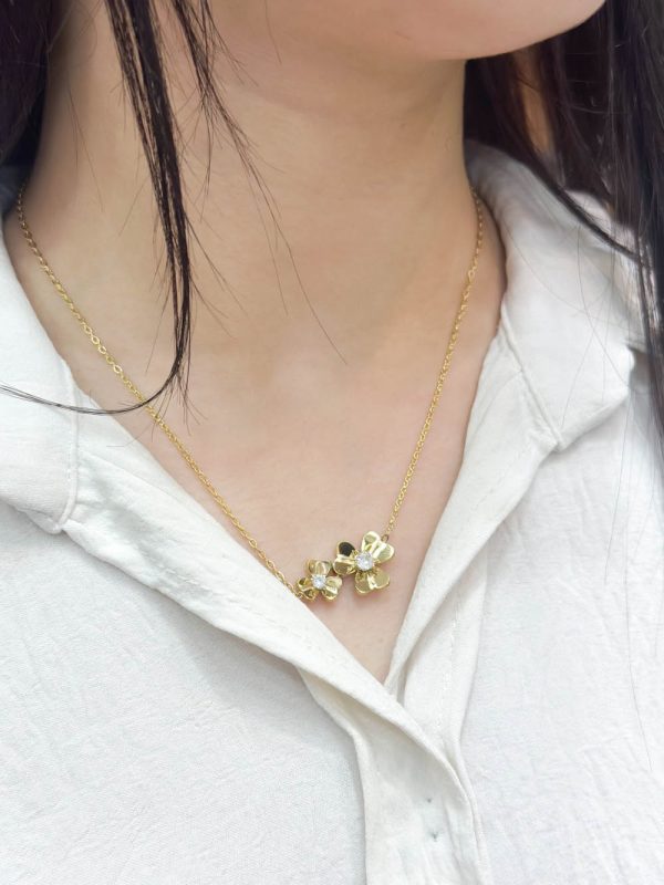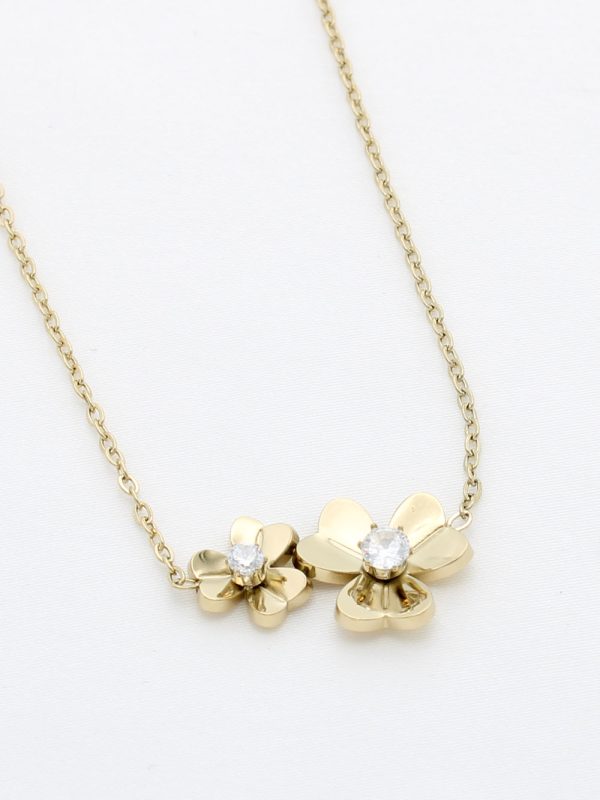 Collier raffiné en acier inoxydable, orné de deux fleurs délicates pour une touche féminine et élégante.