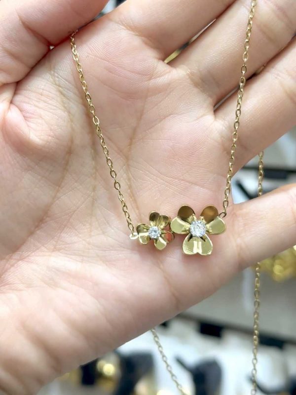 Ce collier en acier inoxydable séduit par son design gracieux mettant en valeur deux fleurs finement travaillées. Symbole de beauté et de douceur, il apporte une touche romantique et intemporelle à votre look. Grâce à sa brillance durable et à son style harmonieux, il s’adapte aussi bien aux tenues quotidiennes qu’aux occasions spéciales. Un bijou qui respire l’élégance naturelle