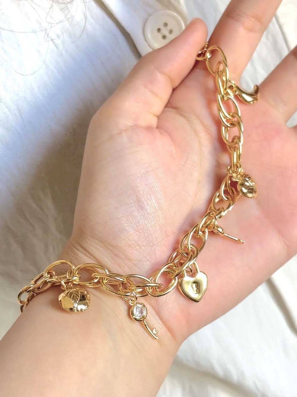 Ce Gourmette Bibelot en plaqué or se distingue par son éclat raffiné et son design travaillé avec soin. Les motifs délicats qui le composent en font un accessoire unique, capable d’ajouter une touche précieuse à chaque tenue. Confortable à porter et résistant grâce à sa conception de qualité, il s’adapte aussi bien à vos journées actives qu’à vos soirées élégantes. Plus qu’un simple bracelet, c’est une pièce qui reflète le raffinement et la féminité.