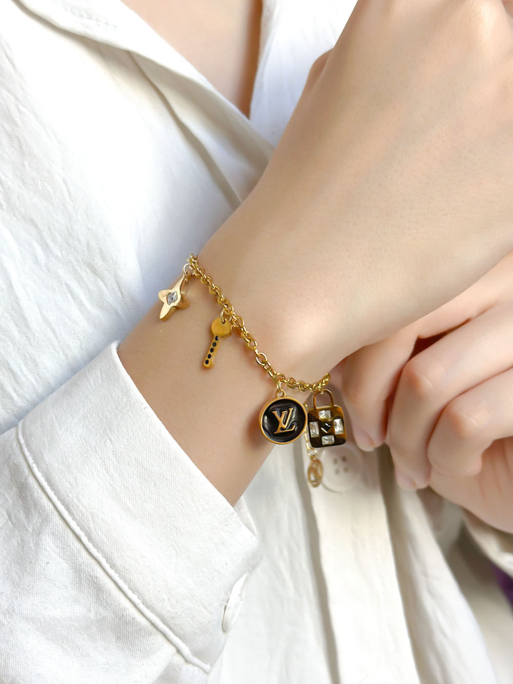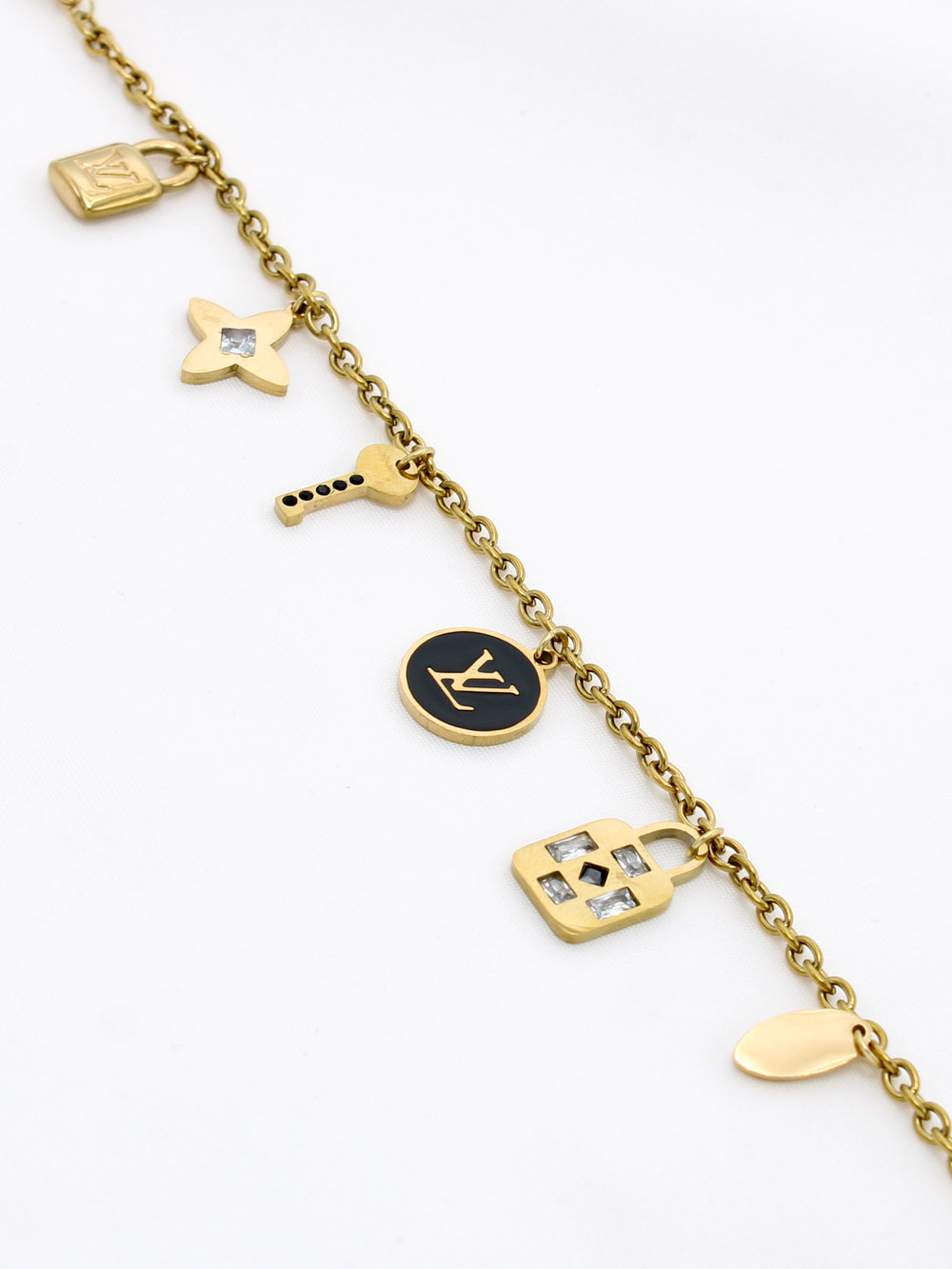 Un bracelet Gourmette raffiné, sublimé par un bibelot Louis Vuitton noir au design iconique.