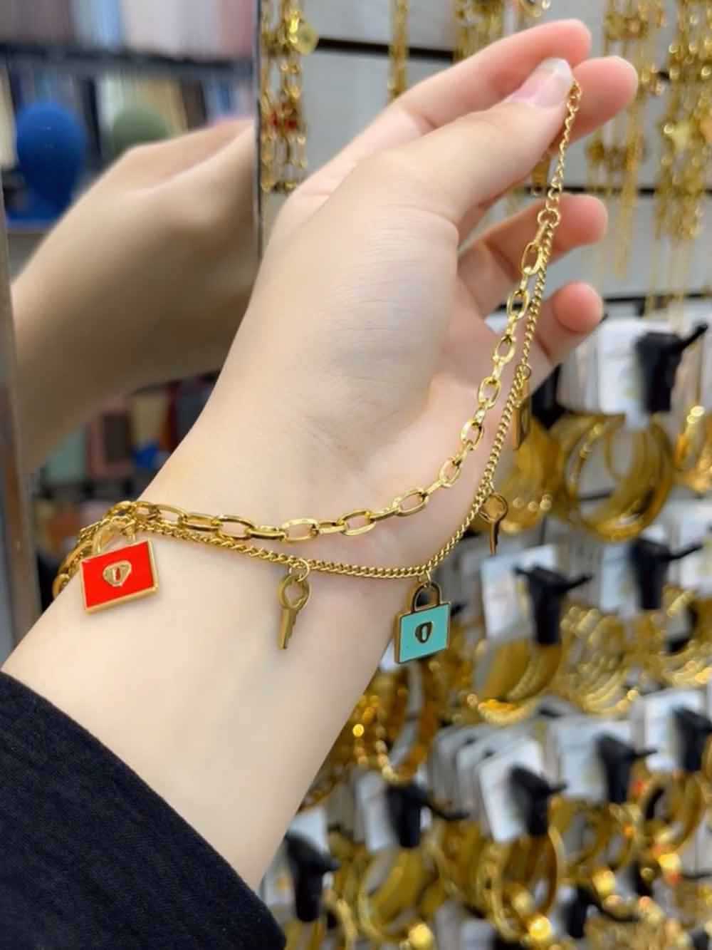 Ce Gourmette à double chaîne se distingue par son design original qui associe robustesse et finesse. Conçu en acier inoxydable de haute qualité, il offre solidité et éclat durable. Son bibelot délicatement intégré ajoute une dimension élégante et tendance, rendant ce bijou idéal pour affirmer son style. Grâce à ses deux chaînes, ce modèle se démarque par son allure contemporaine et raffinée, parfait à porter seul comme pièce maîtresse ou associé à d’autres bracelets pour un effet mode affirmé.