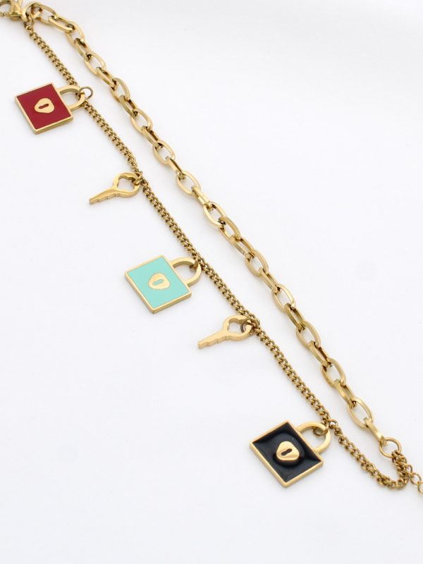 Ce Gourmette à double chaîne se distingue par son design original qui associe robustesse et finesse. Conçu en acier inoxydable de haute qualité, il offre solidité et éclat durable. Son bibelot délicatement intégré ajoute une dimension élégante et tendance, rendant ce bijou idéal pour affirmer son style. Grâce à ses deux chaînes, ce modèle se démarque par son allure contemporaine et raffinée, parfait à porter seul comme pièce maîtresse ou associé à d’autres bracelets pour un effet mode affirmé.