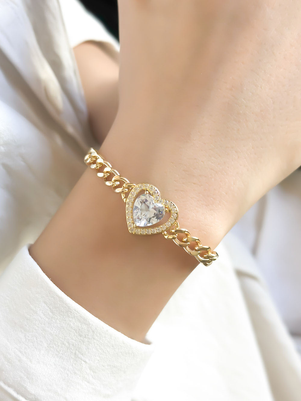 Un Gourmette Pandora élégant orné d’un grand pendentif en forme de cœur blanc, symbole de pureté et de raffinement.