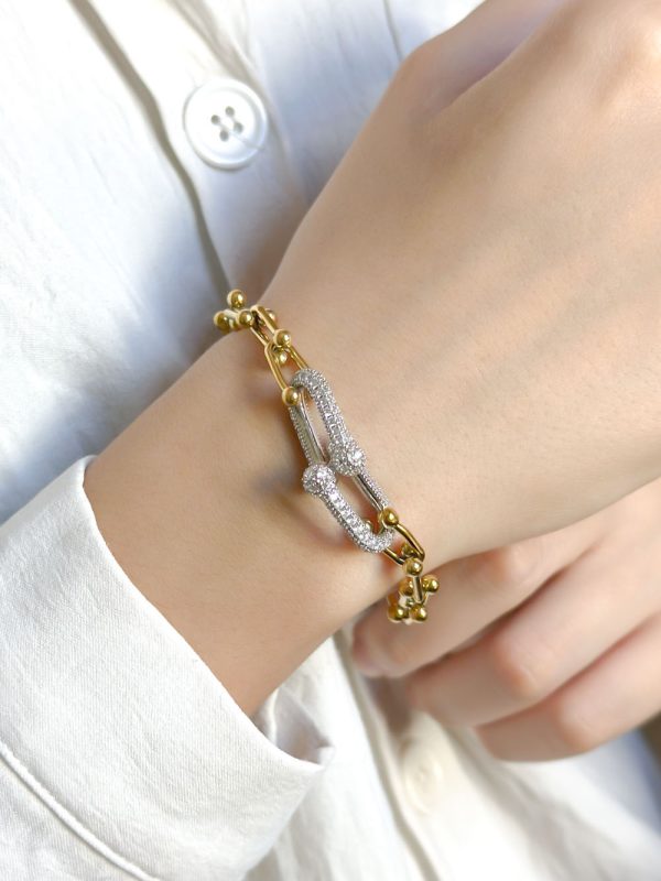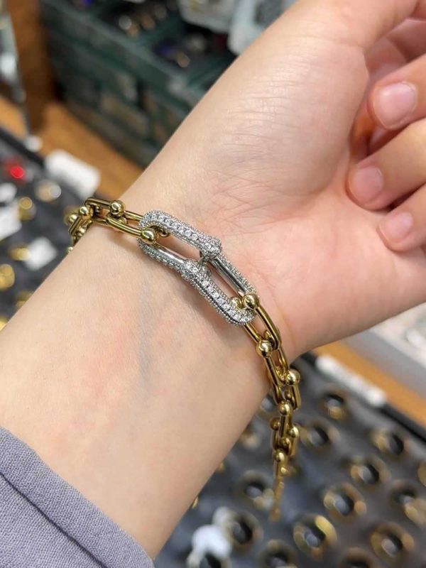 Ces Gourmettes Tiffany se distinguent par leur design intemporel et minimaliste, agrémentés de deux pierres argentées délicates qui reflètent finesse et modernité. Leur éclat discret en fait des pièces idéales pour accompagner aussi bien une tenue quotidienne qu’un look sophistiqué. Symbole d’élégance et de raffinement, ces bracelets incarnent parfaitement l’esprit Tiffany : sobre, luxueux et inoubliable.