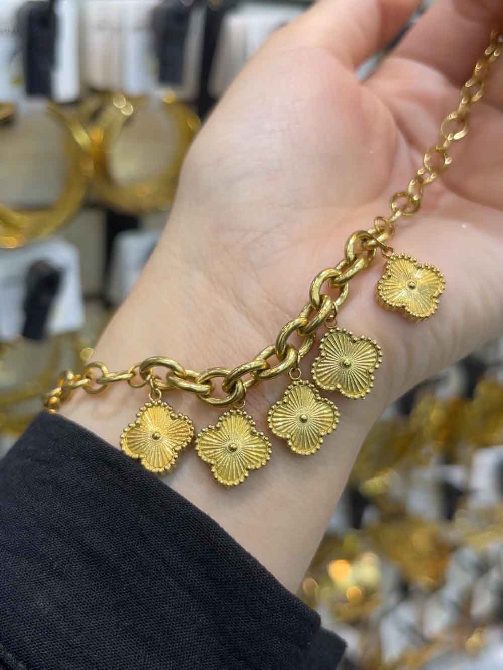 Gourmette Bibelot dorée avec motifs Trèfle P011401