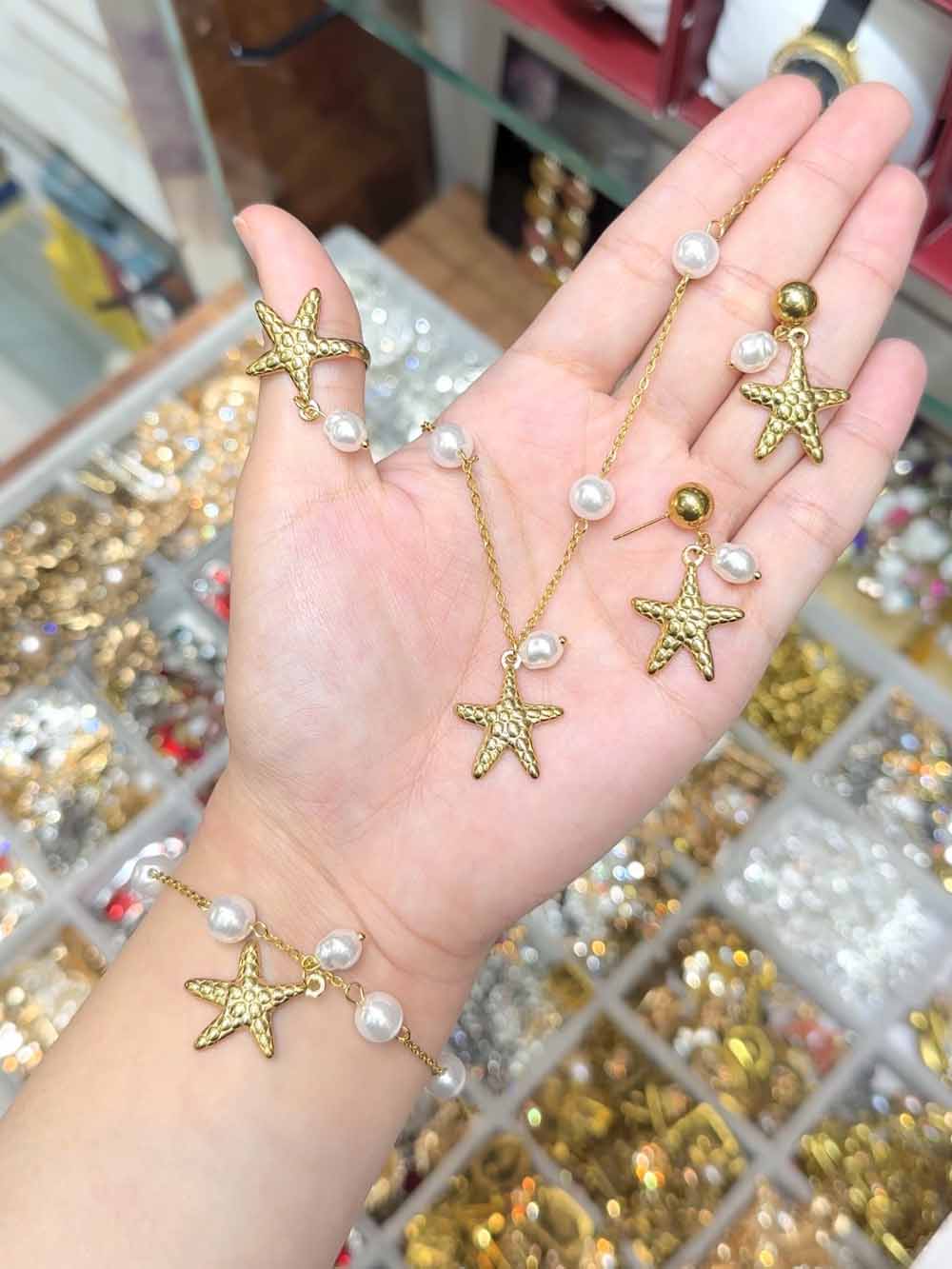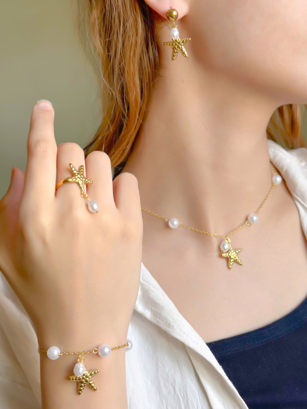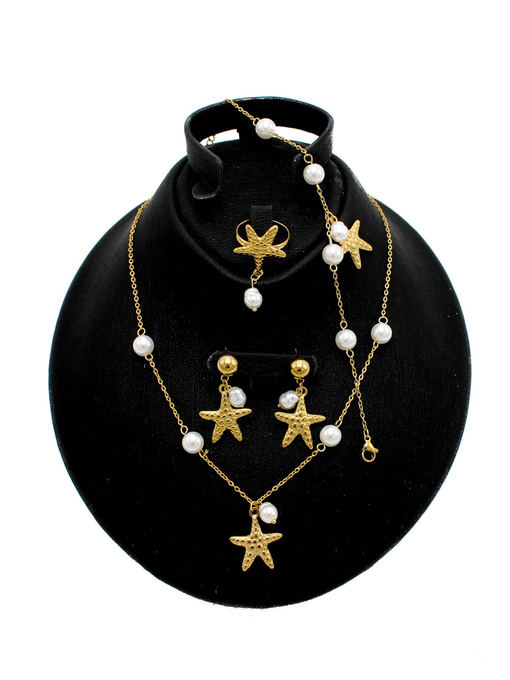 Parure Perles & Étoiles de Mer – Quatre pièces éclatantes et marines P011977