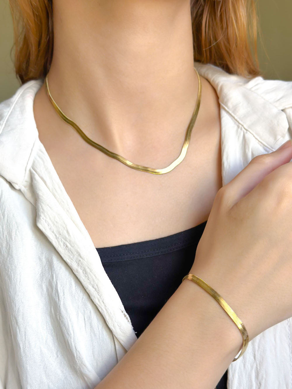 Parure minimaliste aux lignes épurées pour un look chic et lumineux.