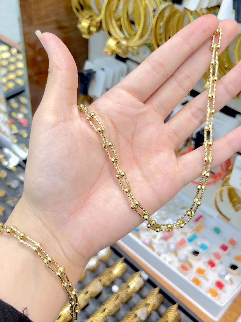 Parure sobre et élégante en acier inoxydable doré, parfaite pour un style moderne et intemporel.